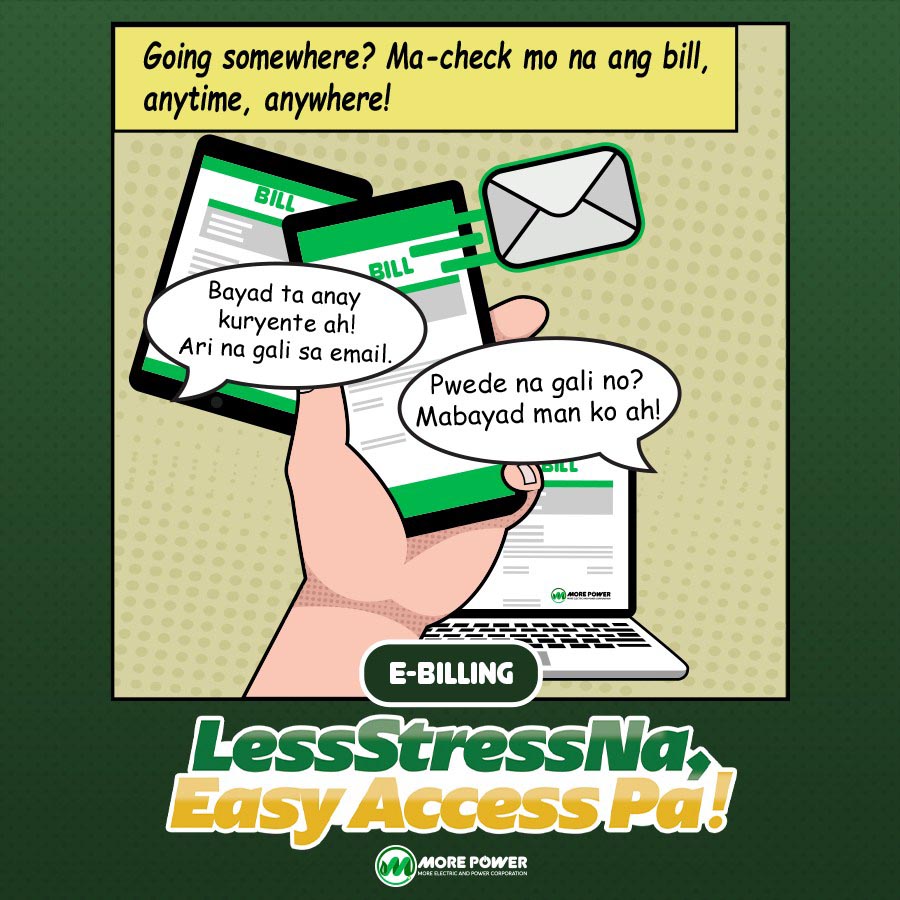 Gone are the days of hassles associated with paper statements, as MORE Power proudly presents its E-Billing service under the banner of “Less Stress Na, Easy Access Pa.” Accessing your electronic statement of account has never been simpler. MORE Power offers customers the choice of utilizing a QR Code or a dedicated link, both readily available on their Facebook Page and various materials including banners strategically placed in different barangays and at their Customer Services Office located in Hotel Del Rio.